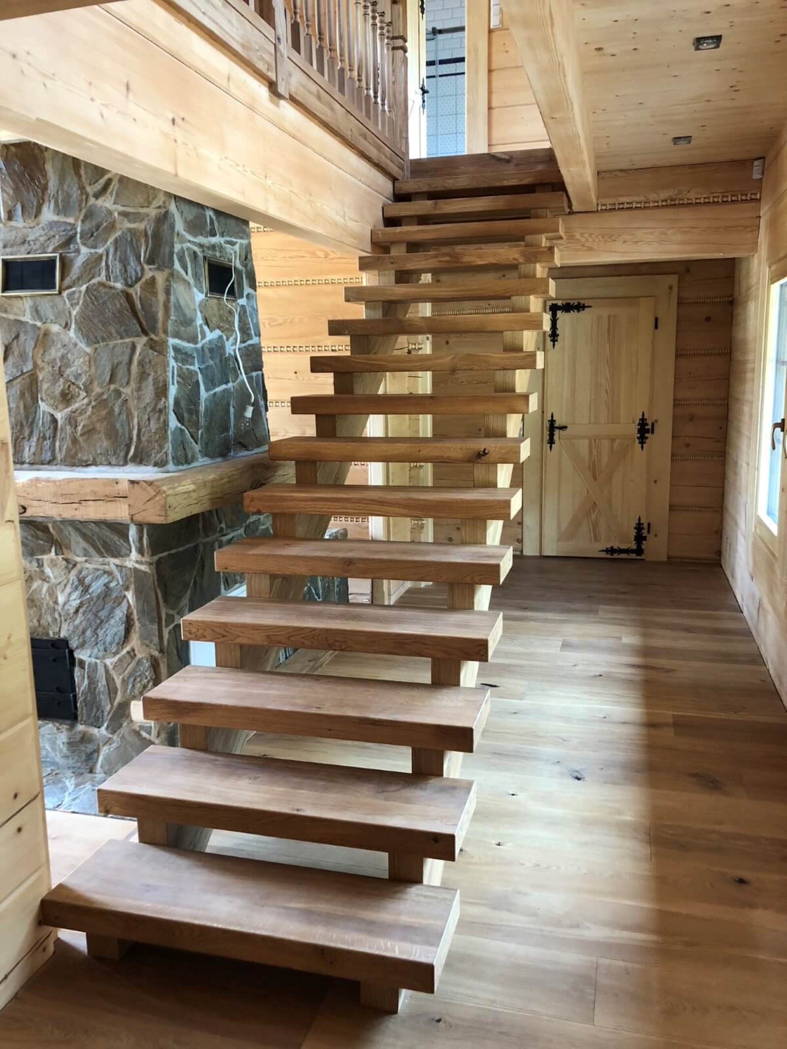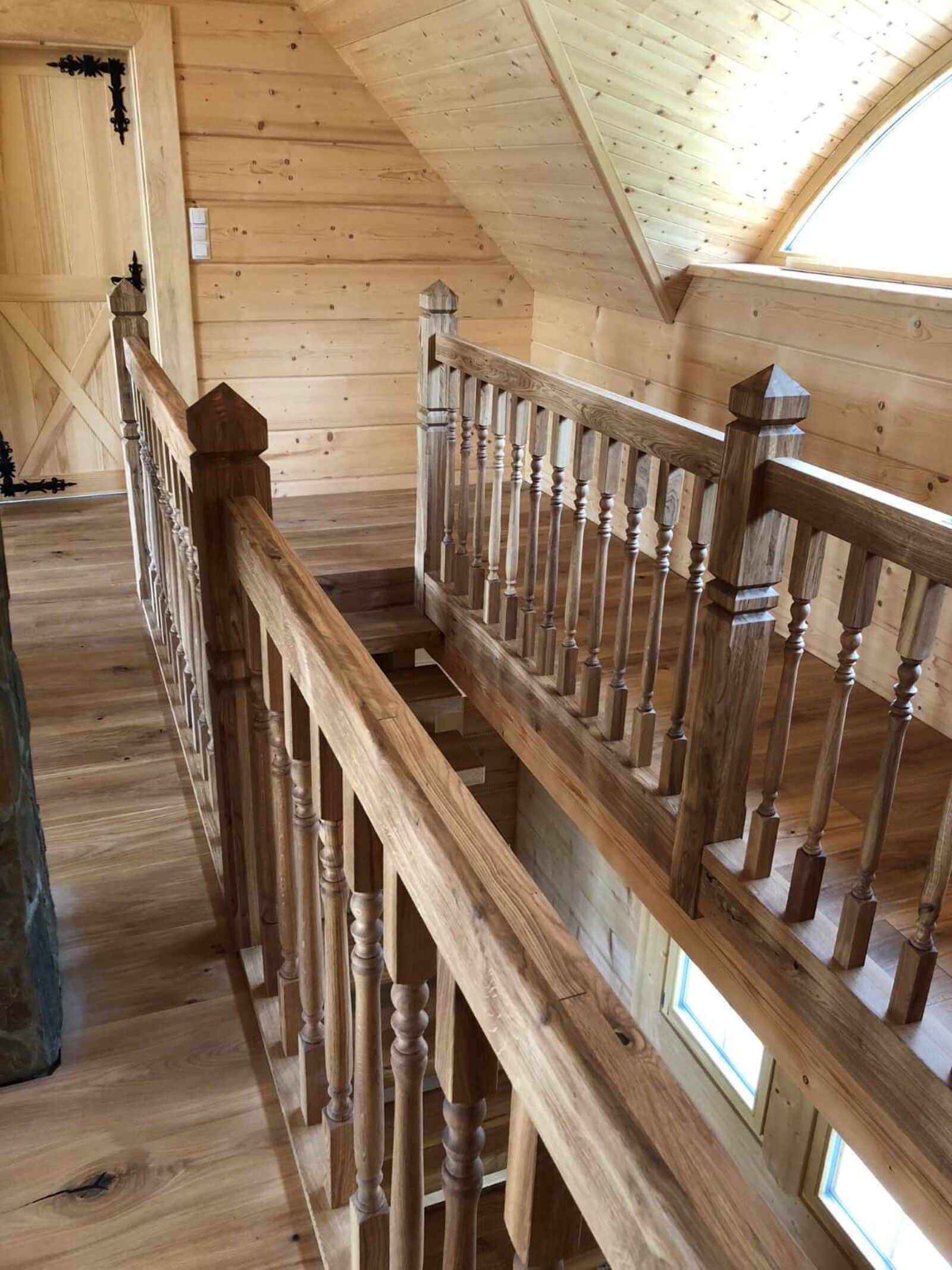 Konstrukcja: Schody ze stopniami nasadzanymi na wangi. Stopnie i wangi pogrubione