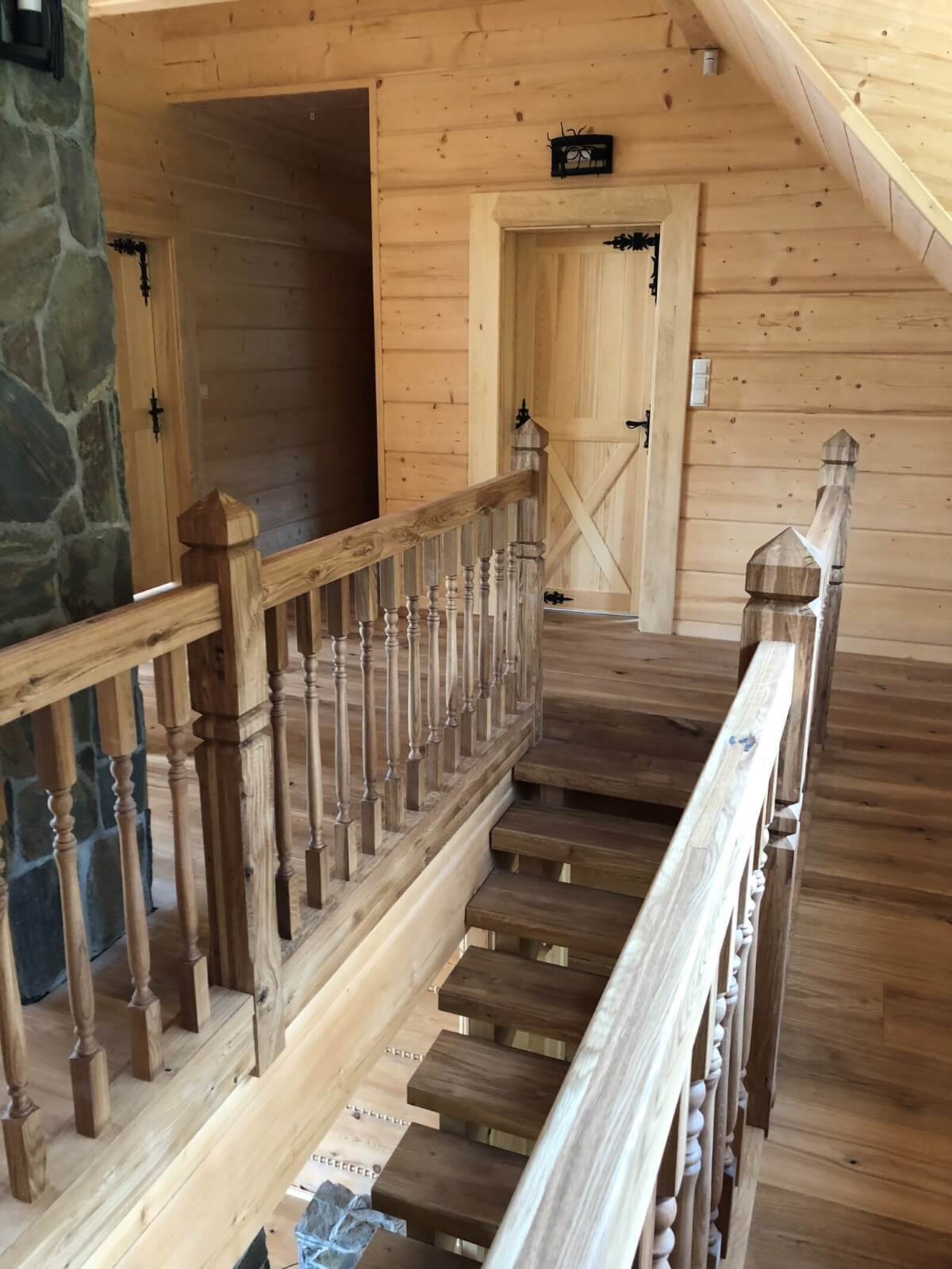Konstrukcja: Schody ze stopniami nasadzanymi na wangi. Stopnie i wangi pogrubione